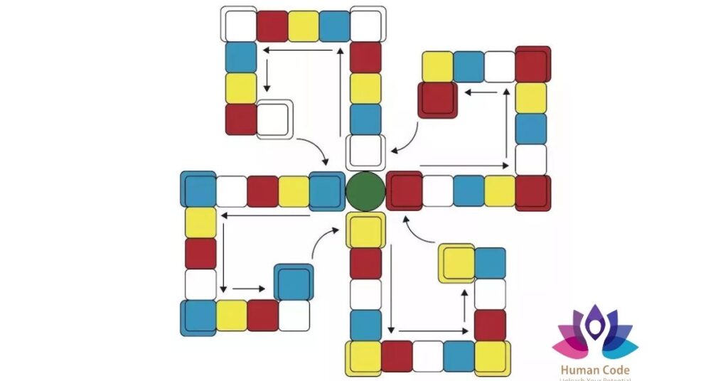 因而,最靠绿色核心的格子,都是磁性调性,最远离绿色核心的格子,都是宇宙调性。格子行走的顺序,是按照逆时针方位。